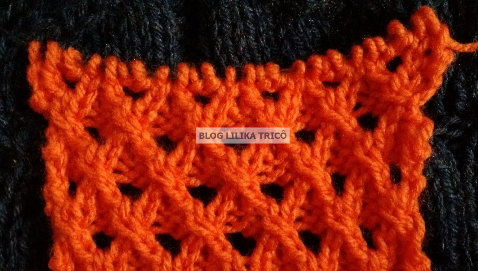 Observação: veja que na carreira 3 você fez duas laçadas consecutivas. Na carreira 4 você vai tricotar a primeira laçada em ponto meia e a segunda laçada em ponto tricô torcido.